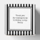 Personalize these cute little boxes with your image and your message on a custom photo keepsake design. Personalize the text on front with your birthday year. The background is a simple stripes pattern with simple white vertical stripes over a black background.