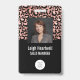 This badge features a trendy modern rose gold and black faux foil leopard print background on top half and a solid black background on the bottom. Customize it with your square photo, name, job title, logo, company name, address or other information, and optional barcode.