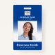Upload your own logo and photo and make custom name tags and employee id badges for your company. Easy to use template. You can resize the photo, logo and bar code with the design tool. To resize the photo you first need to unmask it. Fonts and colors except the white part of the gradient are customizable.