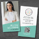 Photo Logo QR Code Modern Professional Vertical Business Card. This modern vertical business card is ideal for corporate professionals, small business owners, freelancers, and consultants seeking a clean and polished design. The current design showcases a stunning teal or turquoise color scheme, creating a fresh and professional aesthetic. The front highlights your photo, company logo, name, and title or business name, offering a personalized yet sleek presentation. The back includes your contact information, a scannable QR code for instant networking, and social media icons with the phrase "Connect with us!" for seamless engagement. You can easily customize any of the colors to match your brand or personal style, making it uniquely yours. Whether you keep the vibrant teal tones or choose a new palette, this card’s bold typography and minimalist design ensure a contemporary look that fits any profession. Make it your own today for a standout impression!
