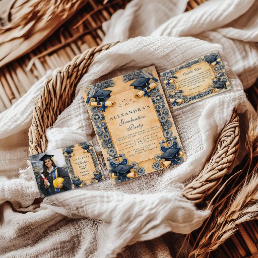 Celebrate a major academic milestone with this refined mechanical engineering graduation design, inspired by technical precision and traditional academic aesthetics. Featuring detailed gear illustrations, mechanical elements, graduation caps, and a warm parchment background, the artwork reflects discipline, problem-solving, and years of focused study.