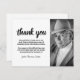 Say “thank you” in an unforgettable way. Whether your bereaved family member was surrounded by a few close friends and family or an extended community, sending formal thank you notes is a lasting way to commemorate their life and celebrate the support they received. Providing tangible tokens of gratitude through this type of invitation card is a way to honor those special moments and show your appreciation for the comfort of others. This minimalist card features a photo of your loved one, and a simple appreciation template that is easy to personalize.