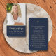 This simple memorial prayer card template on a classic blue background with elegant gold script typography can be given as a keepsake at a Celebration of Life or funeral service or sent as a special tribute to those who were unable to attend. Personalize this card with a favorite photo and your choice of prayer or poem on back of the card. Easy to customize.