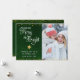 Photo Merry Bright Script Green Gold Glitter Star Holiday Card
