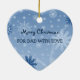 Merry christmas dad ornament customizable with your own family photo in elegant blue and white festive snowflakes pattern. A wonderful christmas gift for dad this holiday season.