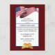 This design features beautiful fully customizable text, beautiful deep burgundy background and flag adorning the top, along with a golden eagle crest at the bottom, which can be fully customizable for text as well.