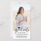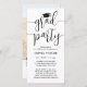 Share the joy of a high school or college graduation and invite family and friends to celebrate with elegant combination photo announcements and party invitations. The picture and wording on this template are simple to personalize and the colors are easy to change using the Zazzle design tool. The modern black and white design features a mortar board cap, trendy script calligraphy, elegant classic typography, and one photo of your choice, such as a senior picture or image from the commencement ceremony. This chic downloadable vertical graduation card is a stylish way to announce a special day celebration. Congratulations to the graduate!