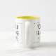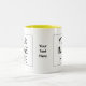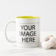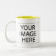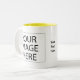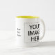 This range of customisable coffee mugs comes in 2 sizes - 11oz and 15oz. The cups are plain white on the outside and colored on the inside, with this particular one being bright yellow. The template allows for you to upload two (2) or more images to the face of the mug and to add your own personal wording. There is no restriction on the numbers of colors you may add, the number of photos you may upload or volume of text you may include. The face of the mug may be changed from white to any one of the background colors offered.
