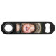 2 photo & name double sided personalized stainless keychain bottle opener bar blade with rounded a solid black border.