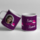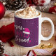 Custom photo casual typography Christmas family squad script with a little heart and Santa hat making a festive Christmas holiday pretty trendy pink and purple hot drinks mug. +++++++++++ Personalize it with your photo and name! It can be a chic decor for you or your family during the holidays or a nice keepsake Christmas stocking stuffer gift for friends or relatives - mother, father, sister, grandma, grandpa.