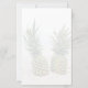 Stationery paper with a photograph featuring a pair of pineapples sitting on a sandy beach.