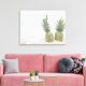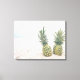 Canvas print with a photograph featuring a pair of pineapples sitting on a sandy beach.