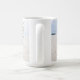 A mug with a photograph featuring a pair of pineapples sitting on a sandy beach.