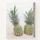 Spiral notebook with a photograph featuring a pair of pineapples sitting on a sandy beach.