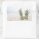 Stickers with a photograph featuring a pair of pineapples sitting on a sandy beach.