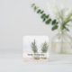 A business card with a photograph featuring a pair of pineapples sitting on a sandy beach.