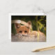 A postcard with a darling photograph featuring a little orange fox peering at you from behind a log out in the wilderness.