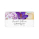 Address labels with a lovely photograph of a dark purple crocus set inside a glass jar. A light purple blossom is present in the background.