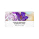 Address labels with a lovely photograph of a dark purple crocus set inside a glass jar. A light purple blossom is present in the background.
