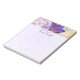 A notepad with a lovely photograph of a dark purple crocus set inside a glass jar. A light purple blossom is present in the background.