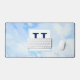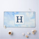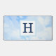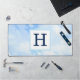 This elegant desk mat features a photo of a soft blue sky with a customizable initial.