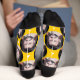 These cute mustard yellow socks feature a photo of a boyfriend for his girlfriend in a trendy offset pattern with white triangles. These fun socks are a great way for your girlfriend (or wife) to remember you as she pulls them on! This is a great birthday gift, Christmas gift, or stocking stuffer, and your girlfriend or wife will love them (almost as much as he loves you!)