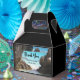 A tiny favor box with a scenic photograph featuring Bermuda's tropical coast. Big jagged rocks contrast with the bright turquoise sea.