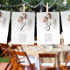 Photo Overlay Wedding Guest Name Table Number card available digitally and printed. Easily personalise the text with each table number and your guest names which will update simultaneously on both sides. Replace the sample photo on each side with your own favorites. Add each table number to your cart separately.