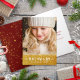 Photo Peace Love Joy Quote Script Gold Star Modern Holiday Card