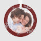 Add this cute photo christmas tree decoration to your collection. Featuring the choice of 4 colored backgrounds, a favorite family photo and snowflakes. The text on the front of the ornament reads 'CHRISTMAS, 2020, AT THE, FAMILY NAME' and some snowflakes scattered around the edge.