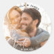 Photo Picture White Modern Script SAVE THE DATE Classic Round Sticker