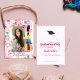 Photo Pink Floral Graduation Party Mini Invitation