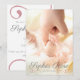 Photo Pink Swirl Script Baby Girl Birth Announcement Comes with a hero photo on the front with a baby name script overlay. The back has all the details between pink swirl decorations