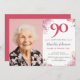 Photo Pink Watercolor Floral 90th Birthday Invitation