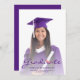 Modern graduation announcement featuring a custom vertical photo. The word "Graduate" appears in purple script, with the graduate's name, school and year of graduation below in sans serif font. Easily replace the sample image with your own graduate's photo. A white gradient screen helps ensure the text pops. The reverse is solid purple. Ideal for high school or college graduation.