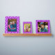 Decorate your walls with this Photo Purple Three-Tone Diamond Pattern Picture Ledge. It features a geometric diamond pattern in three shades of purple. Personalize them with three of your favorite photographs. Give your room an extra pop of color.