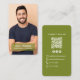 Modern photo contact design featuring a stylish olive green layout and scannable QR code for easy connection. This customizable design includes space for a professional photo, name, social icons and contact details, making it perfect for entrepreneurs, creatives and small business owners. A clean, natural and modern way to share your information and elevate your branding.
