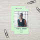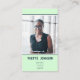 The card features a soothing mint green background, setting a calm and approachable tone. This fresh hue not only stands out from the typical business card palette but also conveys a sense of innovation and freshness. The top half of the card displays a space for a personalized photo, allowing you to add a professional headshot that personalizes and humanizes your business interactions.