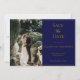 Personalize this photo navy blue and gold formal elegant wedding save the date card. Add your wedding website to the QR code for your guests to easily scan your site.