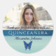 Personalized photo Quinceañera thank-you sticker with a glitter blue butterfly, elegant calligraphy, and custom name. This round sticker is a lovely way to say “thank you” to guests who celebrated her special day. Use them to seal envelopes, decorate party favors, or add a heartfelt detail to thank-you cards.