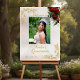 Welcome guests with this elegant Photo, Floral and Gold Leaves Welcome Sign. The design features a photo and floral bouquet on an elegant pearl white background embellished with gold leaves. Designed to coordinate with the "Floral & Gold Leaves - Black & Pearl" Quinceanera Collection. To change details, click «Personalize». To move the text or change the text size, font, or color click «Click to customize further»