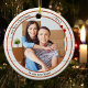 A modern ornament featuring your custom photo framed by a rustic white wood design with red metallic lining and elegant stars. Beautiful for a first Christmas in a new home and customizable for other situations.