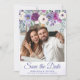 Photo Save the Date Card Periwinkle Fuchsia Floral