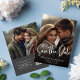 This design features a save the date photo card, perfect for any style weddings, with an elegant, classy, modern minimalist, black and white style, with a simple, 2 photo template, with an elegant typography, calligraphy script design.