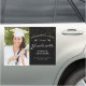 Celebrate your graduate's milestone in style with this graduation car magnet. On the left side, easily replace the sample image with your own photo of your grad. On the right side, the text "Congratulations to our Graduate" appears in white on a black background, with the word "Graduate" in a graceful handwriting-style script. A pair of gold faux glitter mortar board caps and a scattering of gold confetti decorate the top portion of the magnet. Personalize it with your grad's name, school, and year of graduation.