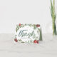 Photo Elegant Wedding Thank You card. The word 'Thanks' is set on a Burgundy Pomegranate and leaves back ground.