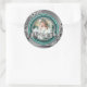 Photo Silver Flourish Elegant Banner Turquoise Classic Round Sticker