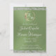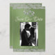This romantic design features an elegant sage green background with glitter borders, placeholder for couple's photo, & two silver hearts intertwined with the date for the event in elegant script on the front. The back has a monogram placeholder, more info and place for your website on the back. Also available with different colored backgrounds for your wedding theme colors. (Glitter is simulated in the artwork). Designed to coordinate with the "Two Shall Become One - Hearts, Doves & Glitter" Wedding Collection. To change details, click «Personalize». Replace photo with your own. To move the text or change the text size, font, or color click «Click to customize further»