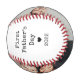 This simple, black and white Father's Day baseball keepsake for the first time father features a simple white background with black vintage typewriter text typography that says "First Father's Day." Add two photos of the new dad and the baby, with room to personalize with names and year.