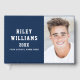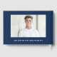Dark blue graduation guest book featuring your photo and the graduate's name and school in a college sports font. Custom text on the spine. Fonts and colors are customizable.